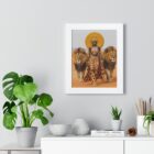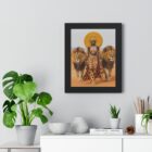 This framed vertical poster brings a bold, regal presence to any wall. Printed on museum-grade matte paper, the image stays crisp and true over time. The slender frame—available in black, white, or warm walnut—wraps the print in a clean border and is protected by a clear acrylic cover. Built-in or included hanging hardware makes wall placement straightforward. Choose a lightweight Ayous wood frame or a sturdy MDF option depending on finish and origin preferences.